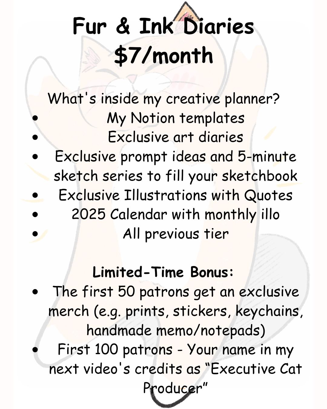 Start small. Stay consistent. Watch your life shift. Join at FUR & INK DIARIES TIER ($7/month) and above on my Patreon.
